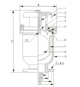 復(fù)合式高速排氣閥可防止浮球在高速氣流中被吹起而堵塞排氣口,造成排氣閥失效。 為防止閥口被吹堵,傳統(tǒng)式高速進(jìn)排氣閥在入口設(shè)置護(hù)筒,使閥門在結(jié)構(gòu)上變得復(fù)雜。